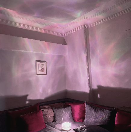 Gentle color waves resembling the aurora borealis, effectively reduces anxiety and stress. This soothing ambiance encourages creativity and emotional well-being, providing a serene space for relexation and rejuvenation
